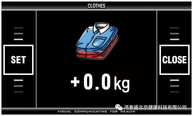 - 按下鍵盤上的‘?’、‘?’鍵設(shè)置減去衣服的重量。每按一次變更0.1kg單位。